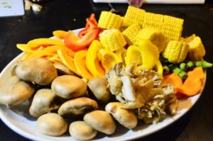 2. キャベツの鉄板焼き with 豚肉・イカ・きのこ